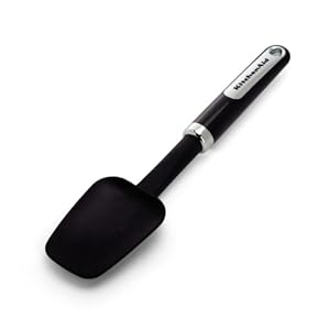 With a nice long manage and a curved flexible head you'll be able to scrape and scoop batter or other ingredients from bowls and pots. Simple to clean, comfy to use, heat-resistant, and coordinated to match your black KitchenAid standmixer, now this is one heck of a spatula!