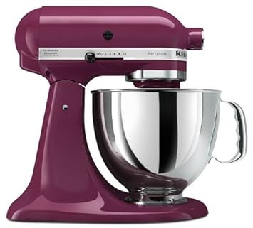 KitchenAid's Artisan stand mixer is a substantial piece of equipment: 325 watts of mixing power make child's play of creaming butter, kneading dough, and whipping cream. The kid in you will appreciate how rapid and painless it is to mix up a batch of cookie dough. This model comes with 3 attachments: a flat beater for generating batter, meat loaf, and all textures in-among a wire whip for egg whites, mayonnaise, and a great deal more air-infused creations and a hook for mixing and kneading yeast doughs. All three are solidly constructed and quickly secured to the beater shaft with a easy twist. This model also consists of a pouring shield for guiding ingredients to their appropriate destination, and the bowl itself locks tight to the base. Standing about 15 inches high, jutting out a foot, and weighing alot more than a grown woman's bowling ball, this stand mixer is not the sort of appliance you will wipe down and place away. Better to obtain a square foot of totally free counter space for simple and easy access besides, this machine is as fairly as it is rugged--you will want to show it off. --Betsy Danheim